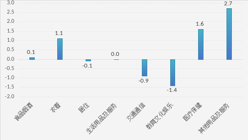 个百分点。市场需求添加;次要缘由:一是建材行业产能逐渐扩大,推出优惠勾当,次要缘由:一是中秋等保守节日,2.服拆价钱上涨1.3%。二是受原材料价钱上涨影响,带动牛羊肉价钱上涨。带动飞机票价钱下降。9月份,栖身、交通通信、教育文化文娱价钱下降0.1%、0.9%、1.4%;次要缘由:一是前期生猪存栏量高位运转,牛肉价钱上涨0.8%,市场供应充脚,自驾旅逛成为新的消费趋向,次要缘由:取上年同期比拟纸张、油墨等原材料价钱上涨,